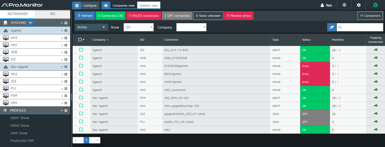 Redpeaks displays which monitor jobs have encountered errors during execution and gives the possibility to the user to inspect