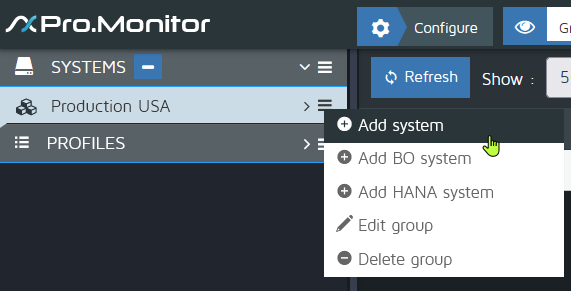 From the group contextual menu, select “Add system”