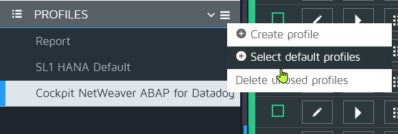 From the profiles menu, select Select default profiles