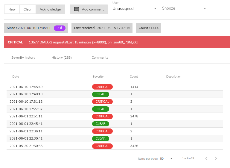 | SNOOZED | The alarm has been snoozed for a given time. It will be removed from the console until snooze time is over |