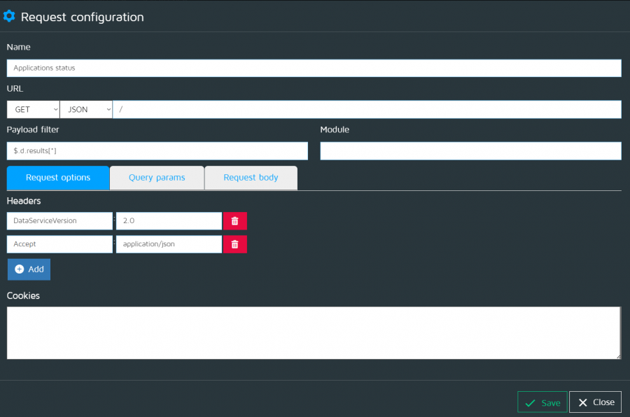 | Payload filter | JSONPATH or XMLPATH to prefilter result data |