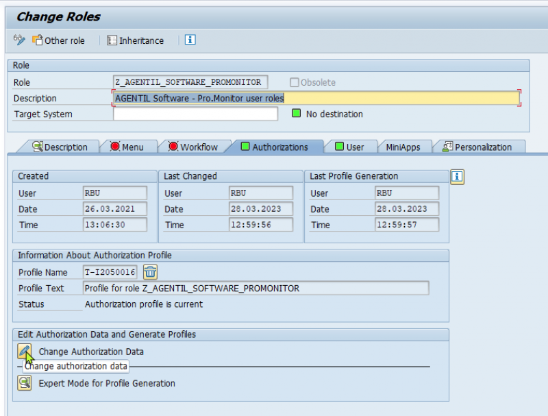 Role→Upload to import the profile in the systemChange authorization data buttonGenerate, then SaveChange authorization data button and click Generate