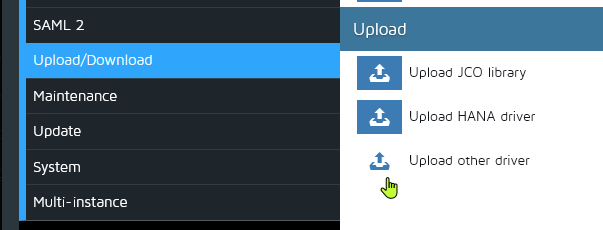 Setting→Updload/Download, and select upload other driversqlcli -u SUPERDBA,<superdbapassword> -d <SID> create user <monitoring_user> password <PASSWORD> grant select on superdba.monitor_lock to <monitoring_user> grant select on sysinfo.datavolumes to <monitoring_user> grant select on sysinfo.datastatistics to <monitoring_user> grant select on sysinfo.logstatistics to <monitoring_user> grant select on sysinfo.cachestatistics to <monitoring_user> grant select on sysinfo.instance to <monitoring_user>