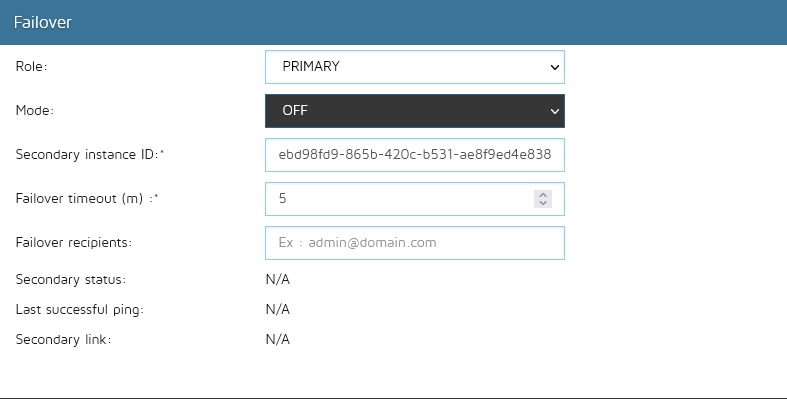 By default, the failover mode is set to OFF, use this mode to deactivate the failover mechanism.