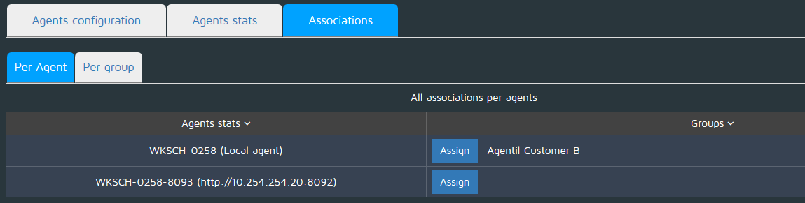 From the associations tab you can assign groups to agents, defining which agent will process the workload generated for the systems belonging to each group.