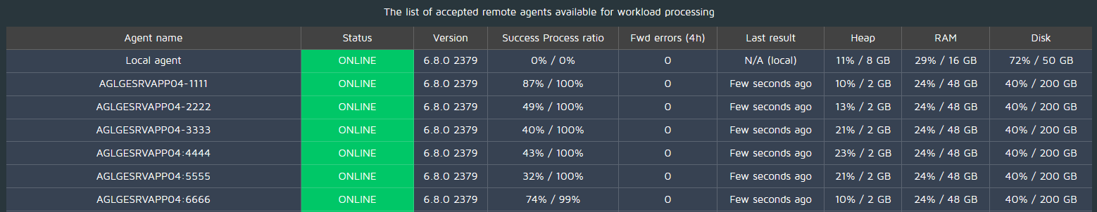 NOTE: Click on any agent to see more details: (Last poll time, average results send time, DB size, etc…)