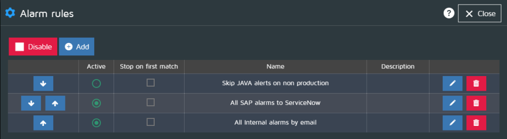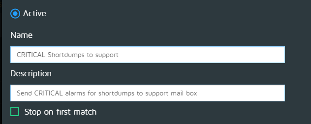 - If enabled, the alarm won't be processed by the next rule if it matches current rule filters.