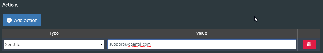 - Send to: Send the alert to the specified recipient (Needs to be associated with email plugin)