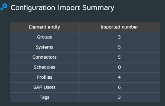 - Monitoring settings (Companies, Systems, Connectors, SAP users, Monitors, monitoring Profiles, etc…)
