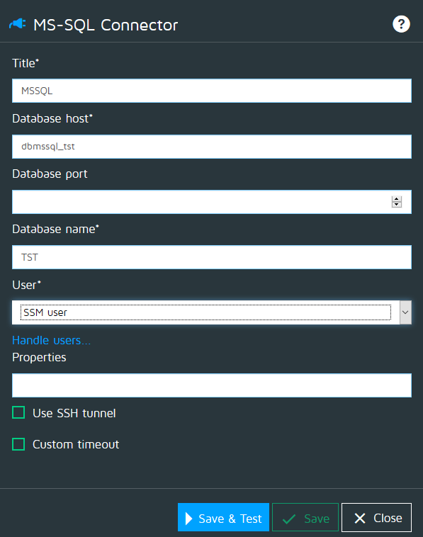 • With the MSSQL connector, you can connect to an MSSQL database via a JDBC driver.
