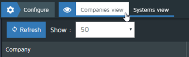• On top of your main page and next to the Configure feature, you will find Companies views and Systems view tabs.
