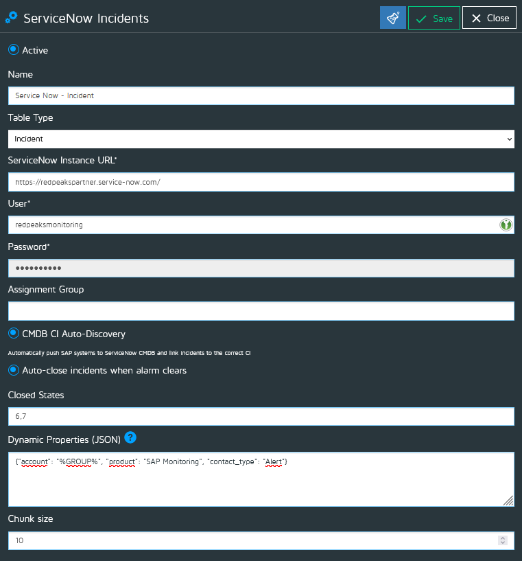 - ServiceNow Incidents